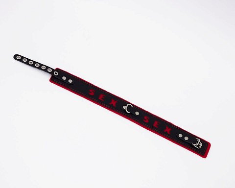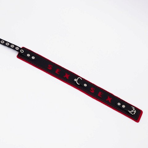 Изделие выполнено из натуральной кожи с надежной стальной фурнитурой , которая добавляет конструкции прочности и элегантности. Мягкая подкладка красного цвета с контрастной строчкой обеспечивает комфортное использование и добавляет изделию стильный акцент. Особый шарм ошейнику придают резные элементы в виде акцентной надписи SEX , которые подчеркивают его дерзкий характер и привлекают внимание.