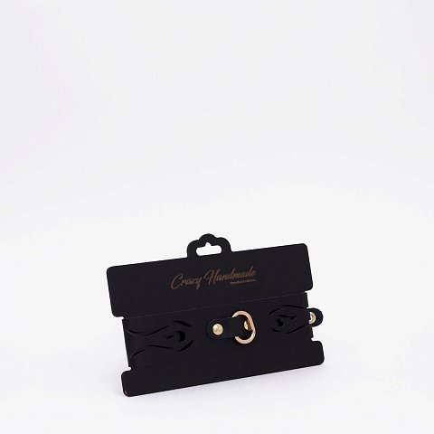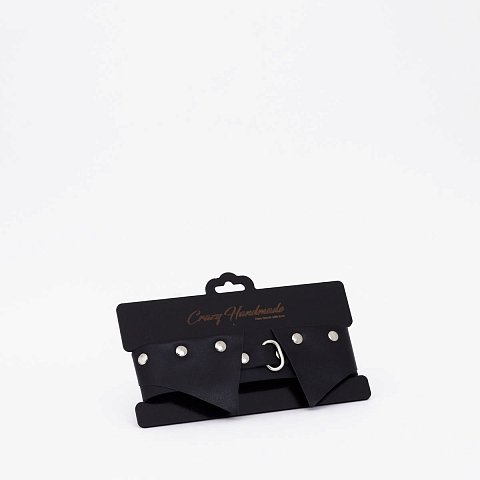 Изделие выполнено из натуральной кожи треугольной формы с декоративными резными узорами , которые добавляют ему изысканности и индивидуальности. Основа состоит из двух частей: ремешка и узорной части, на которой расположено стальное кольцо с золотистым покрытием , подчеркивающее роскошь аксессуара. Резные элементы придают изделию нежность и элегантность, акцентируя внимание на красоте тела.