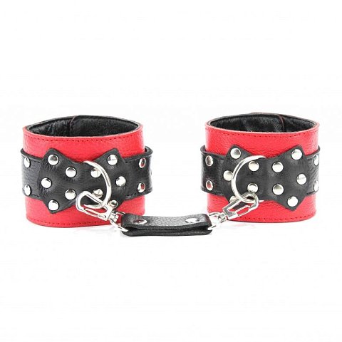 [DETAIL_TEXT] => Наручники выполнены из красной натуральной кожи, с ремнями из черной кожи. Аксессуар украшен металлическими заклёпками и декором в виде банта. Металлическая пряжка крепко удерживает в подчинении, кожаное соединение на карабинах фиксирует наручники вместе. Ремни позволяю выбрать нужный размер, подойдут на обхват руки от 16 до 26 см. Мягкий подклад из черного меха обеспечивает комфорт, помогая полностью погрузиться в БДСМ игру. Ширина - 6 см.