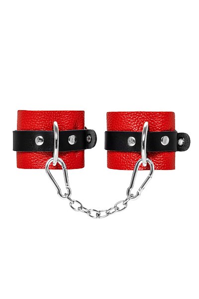 [DETAIL_TEXT] => Не бойтесь своих желаний! Основатели бренда уверены: лучший способ избавиться от искушения - поддаться ему! Мягкие, красные, кожаные наручники с двумя чёрными, жёсткими ремнями могут стать стильным аксессуаром, а могут послужить вашим целям по своему прямому назначению. Частичное обездвиживание и невозможность двигать руками дают вам полную власть над партнером – взрослые игры для взрослых. Наличие двух колец и карабинов, соединенных между собой металлической цепочкой, позволяет использовать изделие как раздельно – аксессуар-манжеты, так и как наручники для фиксации. К широким металлическим кольцам также можно присоединить и другие аксессуары при помощи карабинов. Благодаря универсальному размеру наручники могут использоваться и мужчинами, и женщинами.  Длина манжет - 18 см, ширина - 7 см.