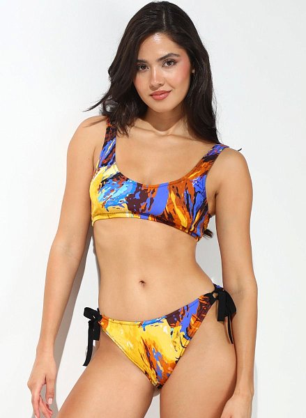 Купальник раздельный. Бюстгальтер на тяжёлую грудь с мягкими чашечками на косточках, с боковым подкроем, с корректирующей сеткой, с дополнительными боковыми поддержками, бретельки регулируются по длине, на спине металлическая застёжка. Трусики слип, на стрейч-подкладке, комфортной средней посадки. В комплекте: лиф, плавки.