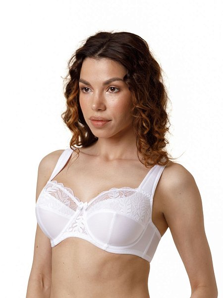Бюстгальтер на каркасах с мягкой чашкой. Чашки имеют Т-образное членение, что позволяет придать груди правильную округлую форму. Широкий стан с боковыми упругими пластинами плотно облегает тело и обеспечивает стабильную комфортную посадку бюстгальтера на фигуре.