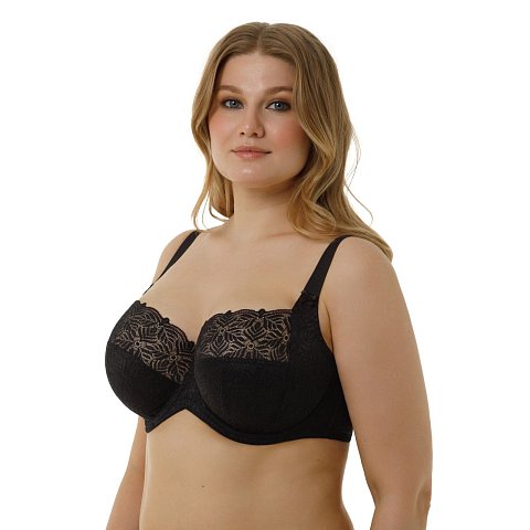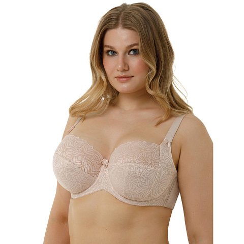 Бюстгальтер на каркасах с мягкой чашкой. Чашки имеют Т-образное членение с боковым подрезом. Эта особенность конструктивного решения позволяет не только придать груди правильную округлую форму, но и обеспечивает высокую поддержку даже для очень большой груди.