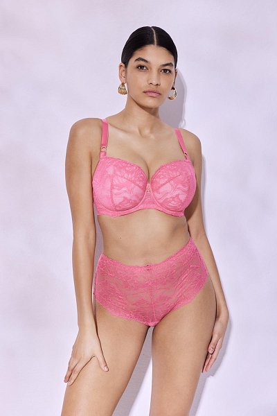 Бюстгальтер на косточках, с боковыми поддержками, чашки шитые, нижняя часть на тонком поролоне, внутренняя сторона прошита хлопковым трикотажем, внешняя из кружева. Бретельки не отстёгиваются, регулируются по длине, на спине застёжка - удлинитель.