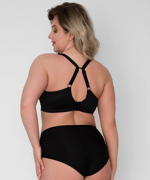 Бюстгальтер-топ выполнен с мягкими чашечками без косточек, чашки шитые из кружевного полотна, продублированы эластичной тканью в тон, под грудью пришита широкая эластичная резинка, спинка из стабилизирующей сетки, Бретельки регулируются по длине, не отстёгиваются, с подвижной фурнитурой-крючком для соединения бретелей на спине. На спине застёжка на удлинитель на 2 и 3 крюка. У данной модели довольно тугой пояс. Рекомендуем использовать удлинитель пояса бюстгальтера на первое время либо выбирать следующий за «своим» размер, с поясом длиннее.