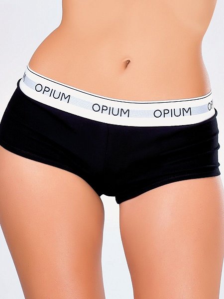 Хлопковые трусы-шортики в спортивном стиле. Комфортная посадка на широкой мягкой резинке с логотипом Opium. Это очень удобный фасон, который можно выигрышно подать почти на любой фигуре.