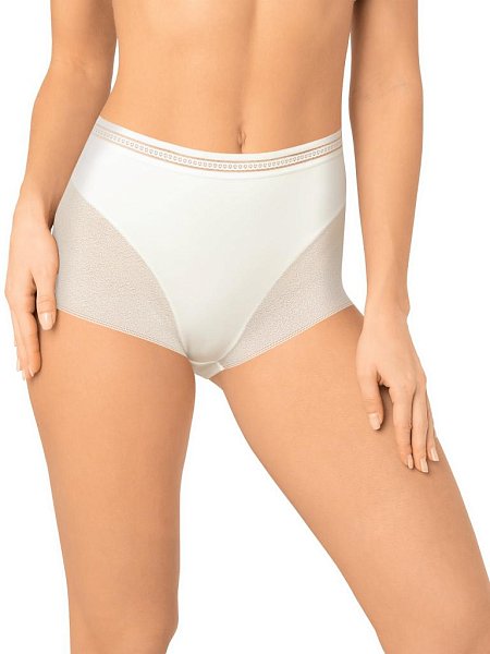 Трусы-слип с высокой линией талии. Передняя и задняя детали выполнены из микрофибры. Вырез бедра из цельнокройного кружева с сетчатой структурой. Широкая декоративная резинка, использованная для обработки талии, придает изделию ультрамодное звучание. Хлопковая ластовица. Упаковка - индивидуальная картонная коробочка. Материал: 84% нейлон, 16% спандекс